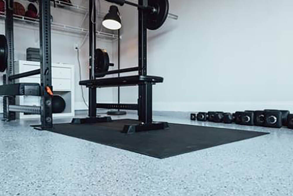 A cold concrete floor may not be what you want for your home gym. You could consider epoxy flooring, which is applied over a concrete floor and comes in a wide array of colors and patterns. Epoxy flooring can also have an additive that makes it non-slip, which is important in a gym. Some people choose rubber mats for their fitness area or foam tiles, which are easier on exercisers’ knees. Add your personal touches – a sound system, television, dorm refrigerator, photos, water cooler – and your home gym is ready to be enjoyed.